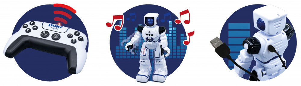 • Zenei és hangeffektek: A robot különböző zenei és hangeffektekkel szórakoztat, ami serkenti a gyermekek hallását és ritmusérzékét.