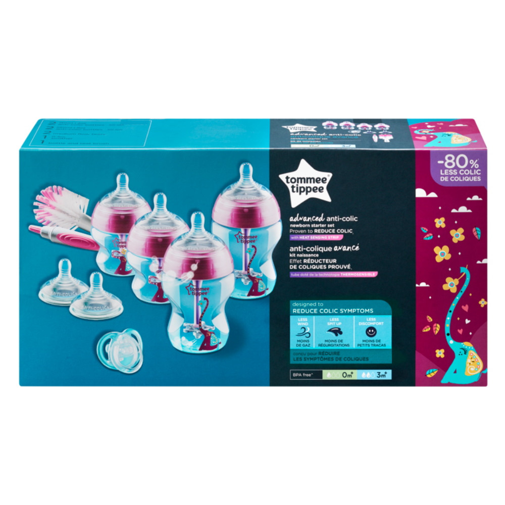 Ez a praktikus kezdõszett kifejezetten a hasfájós babáknak készült. Hatékonyan csökkenti a levegõnyelés tüneteit, használatával kevesebb hasfájás, felfúvódás, sírás, több mosoly és nyugalom jellemzi majd az elsõ hónapokat.A szett tartalmazza azokat a cumisüvegeket, etetõcumikat, nyugtatócumikat és cumisüveg mosó kefét, amire az elsõ pár hétben szüksége lesz az édesanyának, hogy a kisbabát nyugodtan és magabiztosan tudja cumisüvegbõl táplálni. A szett tartalma:•2 db Advanced Anti-Colic 150 ml cumisüveg lassú folyású cumival•2 db Advanced Anti-Colic 260 ml cumisüveg lassú folyású cumival•2 db Advanced Anti-Colic közepes folyású cumisüveg cumi•1 db 0-6 hónapos játszócumi •1 db cumisüveg mosó kefeA cumisüveg 3 részbõl álló, egyedi rendszerének köszönhetõen biztosítja az optimális levegõelvezetést az etetés során. A légbuborékok a levegõelvezetõ csövön keresztül a folyadékot megkerülve, a cumisüveg aljába vándorolnak.A levegõ-elvezetõ csõ alján található csillag alakú szelep megakadályozza, hogy a folyadék visszakerüljön a csõbe, így nincs több csöpögés.A levegõelvezetõ csõbe épített hõérzékelõ csík pedig megmutatja, hogy megfelelõ-e az étel hõmérséklete. Kék: egy kicsit hideg, lila: pont jó, rózsaszín: túl forró.Természetesen a már jól ismert Tommee Tippee anyamell formával, és a mellbimbóhoz hasonló mûködésû cumival.Termék jellemzõk:•Kifejezetten hasfájós babáknak•Egyedi levegõelvezetõ rendszerrel, amely a cumisüveg aljába vezeti a légbuborékokat•A csillag alakú szelep megakadályozza a csöpögést•Beépített hõérzékelõ csík, amely rózsaszín lesz, ha túl forró az étel•Kis méretû kefével a levegõelvezetõ csõ belsõ tisztításához•Csak Advanced Anti-Colic cumisüveggel használható•Mosogatógép felsõ kosarában is mosható, sterilizálható•BPA-mentes•Többféle színben kapható- Fontos! A termék egészségvédelmi és higiéniai terméknek minõsül. Amennyiben a csomagolás felbontásra került, vagy a kipróbálás jelei látszódnak a terméken, úgy a 14 napos elállási jog érvényét veszíti a 45/2014. (II. 26.) korm. rendelet 29. § (1) bekezdése alapján.