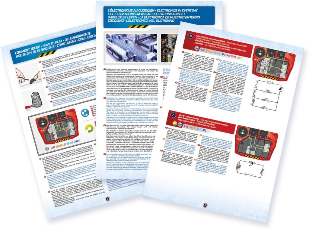 • 50 izgalmas, interaktív kísérlet: A készlet több mint 50 különböző projektet tartalmaz, amelyek a legalapvetőbb áramköröktől a bonyolultabb fény- és hangjelzésekig terjednek. Ez a változatosság garantálja, hogy a gyermek folyamatosan tanulhat és fejlődhet, miközben a játék izgalma megmarad.