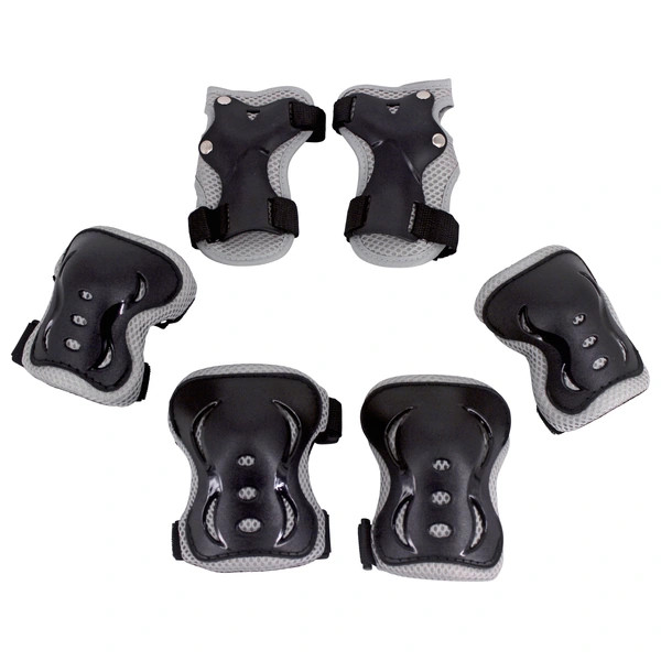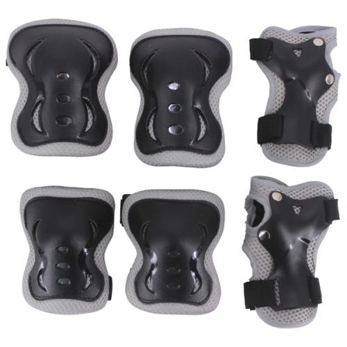 Ez a védőfelszerelés nélkülözhetetlen darab. Megvédi a könyököket, csuklókat és térdeket görkorcsolyázás, hegyi kerékpározás vagy rollerezés közben. Egészítsd ki a védőszettet egy sisakkal (külön megvásárolható). A csukló-, könyök- és térdvédők visszafogott kialakítása, fekete PP sapkákkal és szürke EVA párnázással stílusosan illeszkednek számos más kiegészítőhöz és stílushoz.