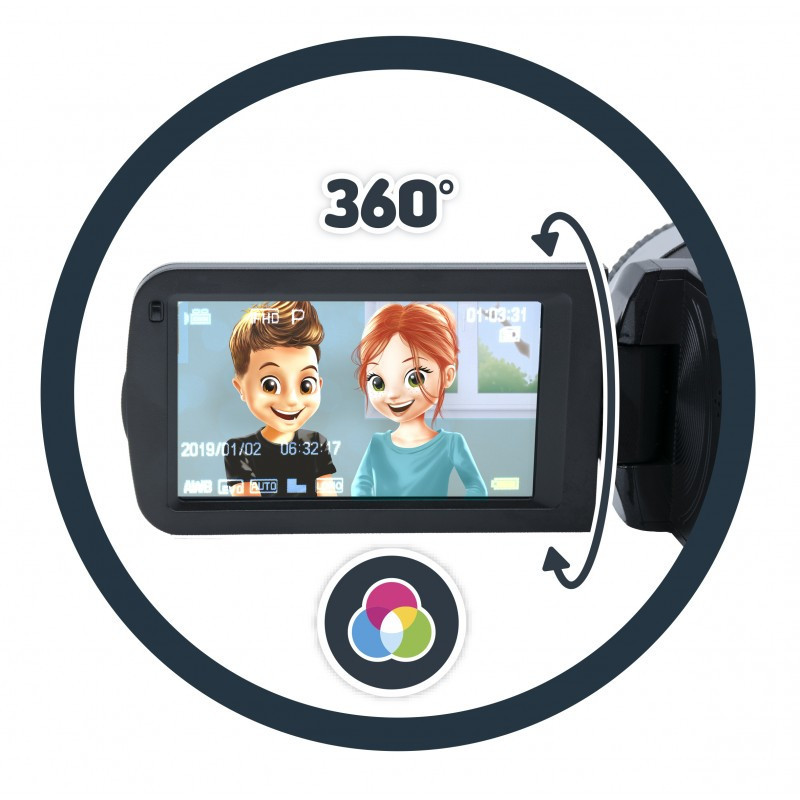• Kényelmes használat: A színesen illusztrált használati utasításnak köszönhetően még a kezdők is könnyedén elsajátíthatják a kamera használatát. A 16 GB-os SD kártya pedig elegendő tárhelyet biztosít a számos felvételhez.